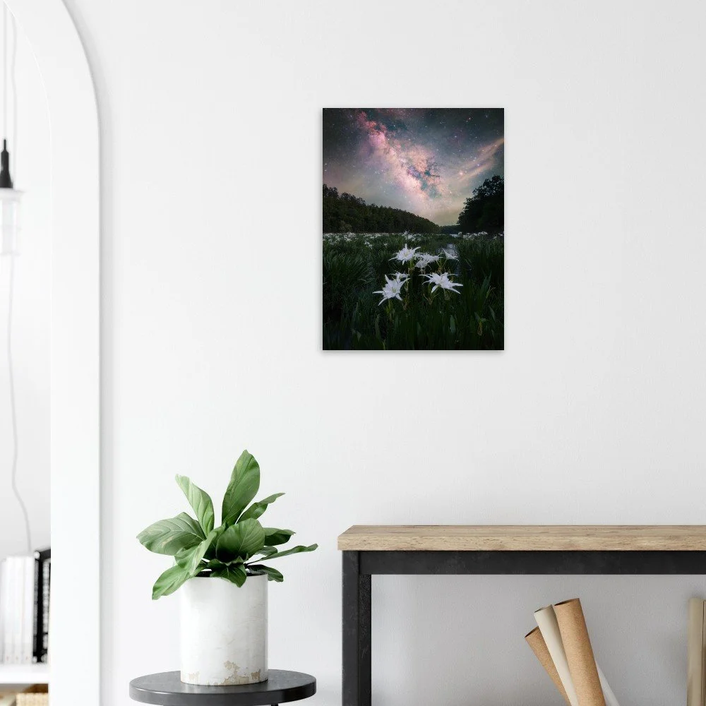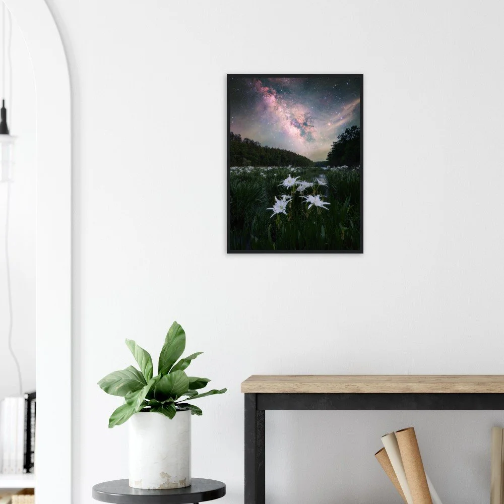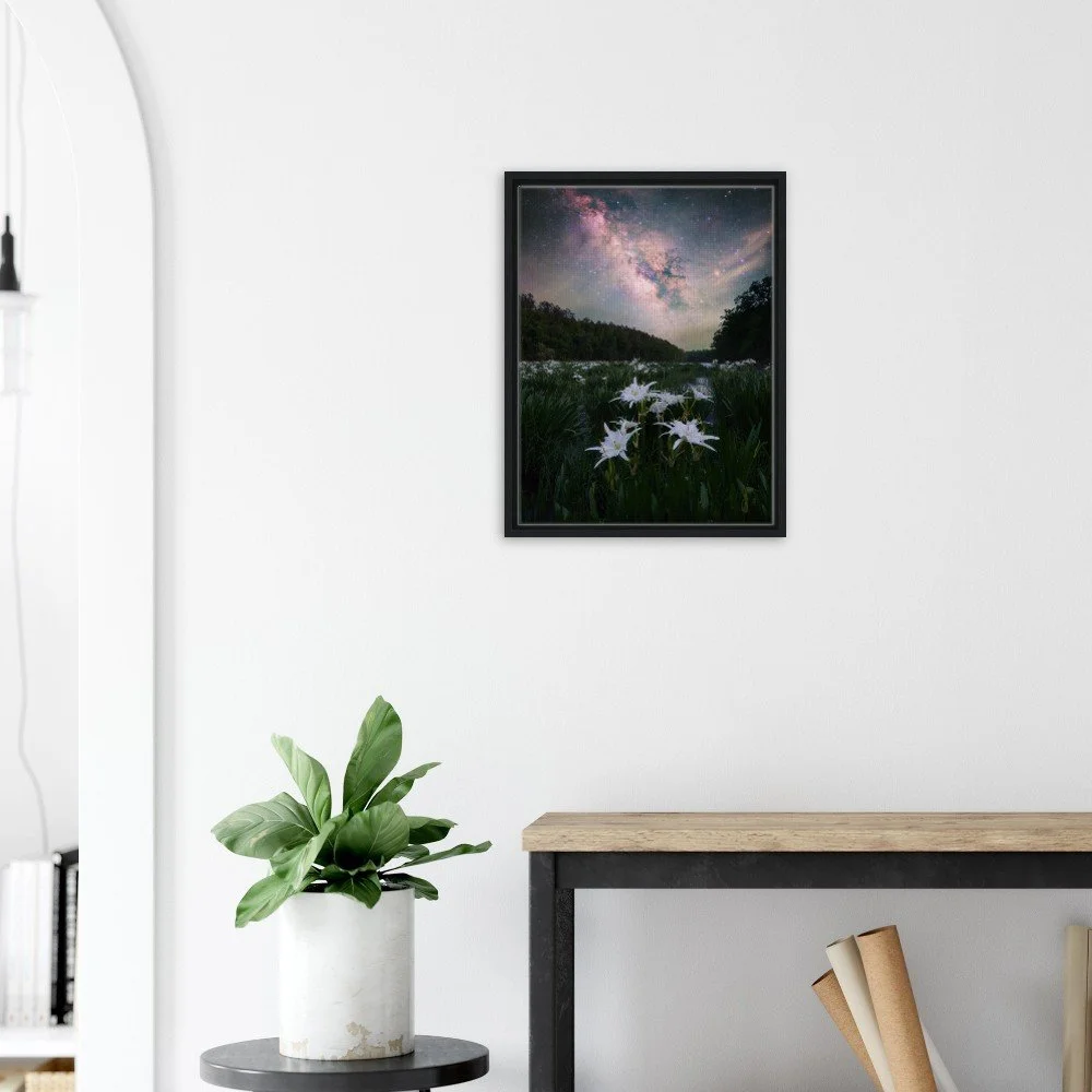 Captured in April of 2026, this image features the Milky Way and the famous and beautiful Cahaba Lilies that will bring life to any room!