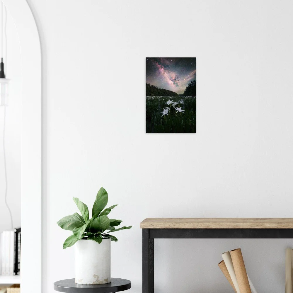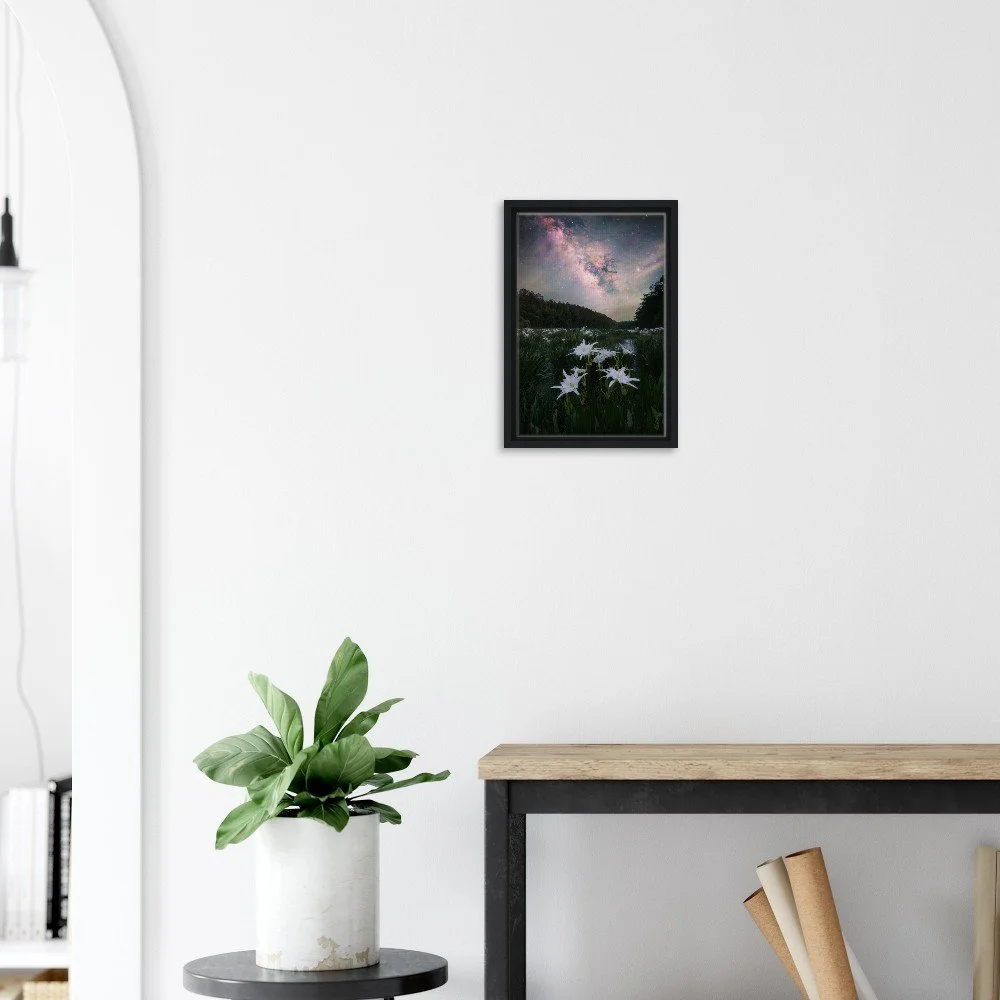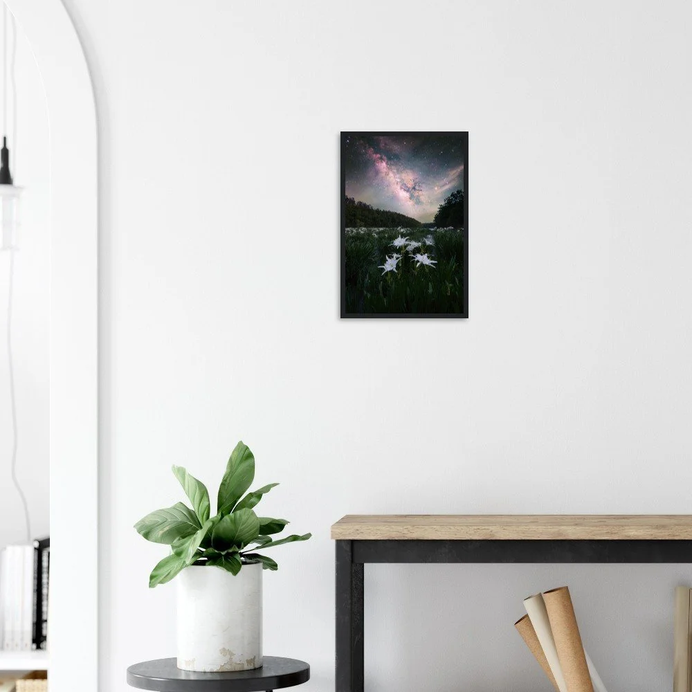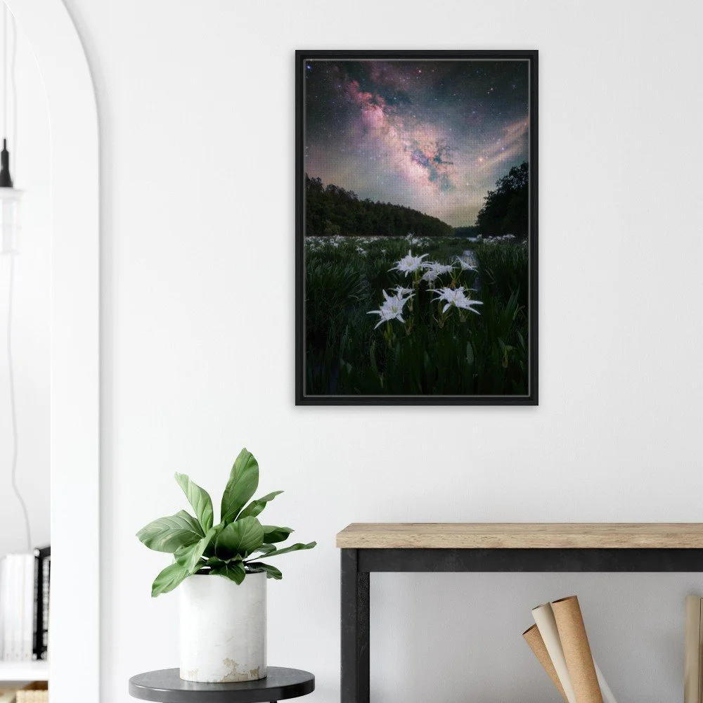 Captured in April of 2026, this image features the Milky Way and the famous and beautiful Cahaba Lilies that will bring life to any room!